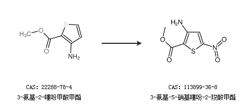 2.通过3-氨基-2-噻吩甲酸甲酯合成3-氨基-5-硝基噻吩-2-羧酸甲酯