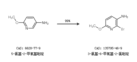 1.通过5-氨基-2-甲氧基吡啶合成3-氨基-6-甲氧基-2-氯吡啶,收率约99%;