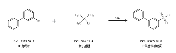 1.通过3-溴联苯和叔丁基锂合成3-苯基苯磺酰氯,收率约48%;