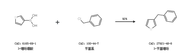 2.通过3-噻吩硼酸和苄基氯合成3-苄基噻吩,收率约92%;