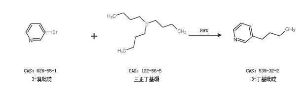 1.通过3-溴吡啶和三正丁基硼合成3-丁基吡啶,收率约89%;