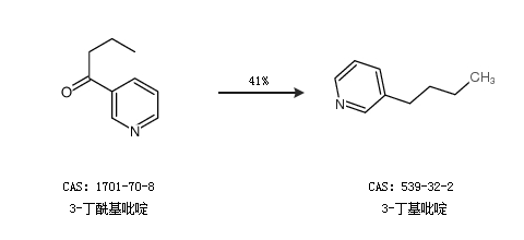 2.通过3-丁酰基吡啶合成3-丁基吡啶,收率约41%;