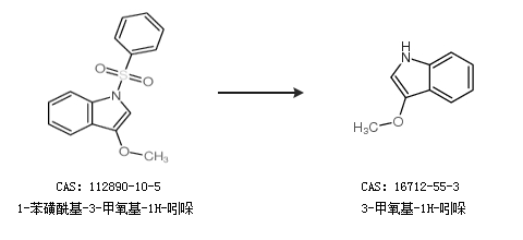1.通过1-苯磺酰基-3-甲氧基-1H-吲哚合成3-甲氧基-1H-吲哚