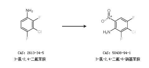 1.通过3-氯-2,4-二氟苯胺合成3-氯-2,4-二氟-6-硝基苯胺