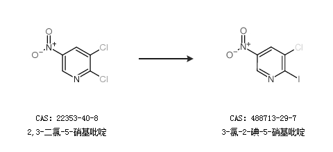 1.通过2,3-二氯-5-硝基吡啶合成3-氯-2-碘-5-硝基吡啶