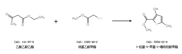 2.通过乙酰乙酸乙酯和巯基乙酸甲酯合成3-羟基-5-甲基-2-噻吩羧酸甲酯