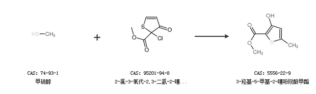 1.通过甲硫醇和2-氯-3-氧代-2,3-二氢-2-噻吩羧酸甲酯合成3-羟基-5-甲基-2-噻吩羧酸甲酯