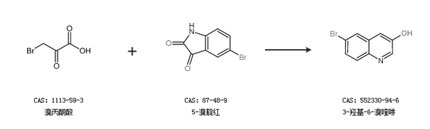 1.通过溴丙酮酸和5-溴靛红合成3-羟基-6-溴喹啉