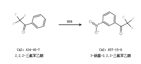 2.通过2,2,2-三氟苯乙酮合成3-硝基-2,2,2-三氟苯乙酮,收率约98%;