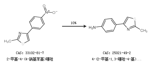 1.通过2-甲基-4-(4-硝基苯基)噻唑合成4-(2-甲基-1,3-噻唑-4-基)苯胺,收率约10%;