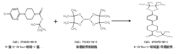 2.通过5-溴-2-(4-boc-哌嗪-1-基)嘧啶和联硼酸频那醇酯合成4-(4-Boc-1-哌嗪基)苯硼酸频哪醇酯