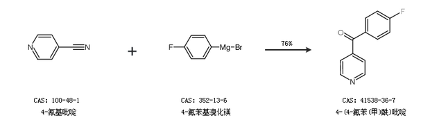 1.通过4-氰基吡啶和4-氟苯基溴化镁合成4-(4-氟苯(甲)酰)吡啶,收率约76%;