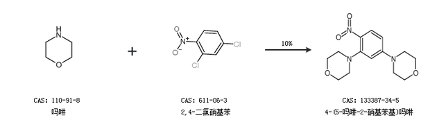 2.通过吗啉和2,4-二氯硝基苯合成4-(5-吗啉-2-硝基苯基)吗啉,收率约10%;