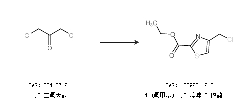 2.通过1,3-二氯丙酮合成4-(氯甲基)-1,3-噻唑-2-羧酸乙酯