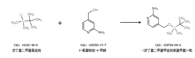 1.通过叔丁基二甲基氯硅烷和2-氨基吡啶-4-甲醇合成4-(叔丁基二甲基甲硅烷氧基甲基)-吡啶-2-胺