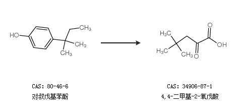 1.通过对叔戊基苯酚合成4,4-二甲基-2-氧戊酸