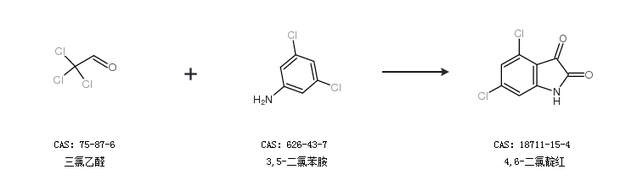 1.通过三氯乙醛和3,5-二氯苯胺合成4,6-二氯靛红