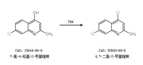 1.通过7-氯-4-羟基-2-甲基喹啉合成4,7-二氯-2-甲基喹啉,收率约79%;
