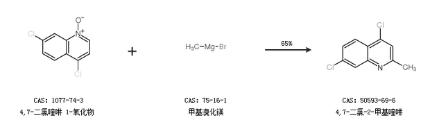 2.通过4,7-二氯喹啉 1-氧化物和甲基溴化镁合成4,7-二氯-2-甲基喹啉,收率约65%;
