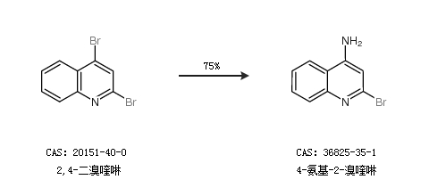 2.通过2,4-二溴喹啉合成4-氨基-2-溴喹啉,收率约75%;