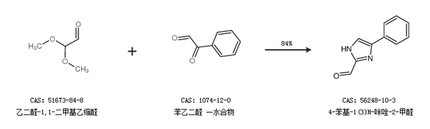 1.通过乙二醛-1,1-二甲基乙缩醛和苯乙二醛 一水合物合成4-苯基-1(3)H-咪唑-2-甲醛,收率约84%;