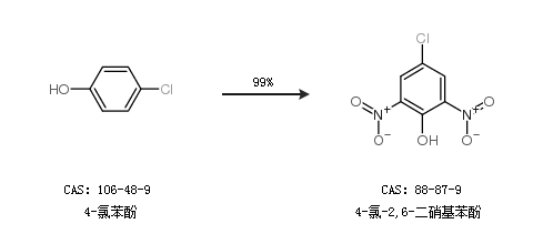 1.通过4-氯苯酚合成4-氯-2,6-二硝基苯酚,收率约99%;