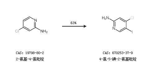 1.通过2-氨基-4-氯吡啶合成4-氯-5-碘-2-氨基吡啶,收率约63%;