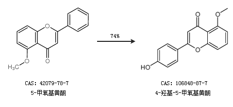1.通过5-甲氧基黄酮合成4-羟基-5-甲氧基黄酮,收率约74%;