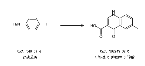 2.通过对碘苯胺合成4-羟基-6-碘喹啉-3-羧酸