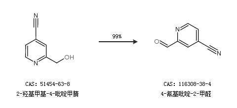 1.通过2-羟基甲基-4-吡啶甲腈合成4-氰基吡啶-2-甲醛,收率约99%;