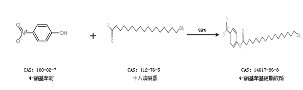 2.通过4-硝基苯酚和十八烷酰氯合成4-硝基苯基硬脂酸酯,收率约99%;