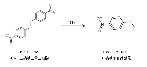 1.通过4,4''-二硝基二苯二硫醚合成4-硝基苯亚磺酰氯,收率约97%;