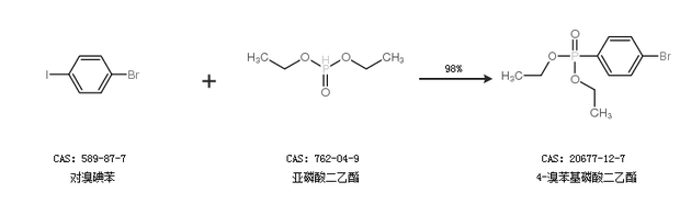 1.通过对溴碘苯和亚磷酸二乙酯合成4-溴苯基磷酸二乙酯,收率约98%;