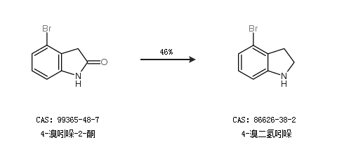 2.通过4-溴吲哚-2-酮合成4-溴二氢吲哚,收率约46%;