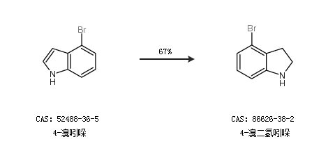 1.通过4-溴吲哚合成4-溴二氢吲哚,收率约67%;