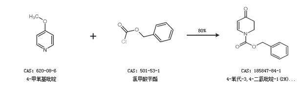 1.通过4-甲氧基吡啶和氯甲酸苄酯合成4-氧代-3,4-二氢吡啶-1(2H)-羧酸苄酯,收率约80%;