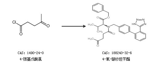 英文别名 (S)-N-(4-Oxo-valeryl)-N-[(2''-(1H-tetrazol-5-yl)biphenyl-4-yl)methyl]valine benzyl ester;4-Oxo Valsartan Benzyl Ester;N-(1,4-Dioxopentyl)-N-[[2''-(1H-tetrazol-5-yl)[1,1''-biphenyl]-4-yl]methyl]-L-valine Phenylmethyl Ester;