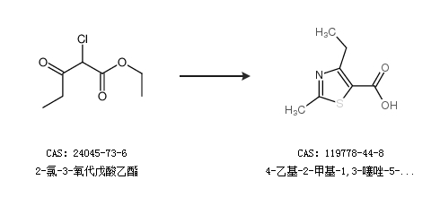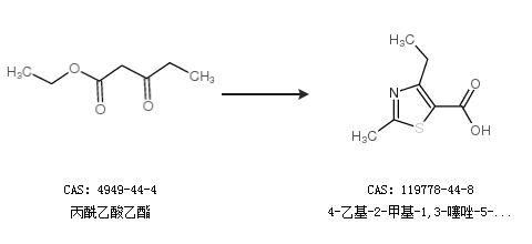 2.通过丙酰乙酸乙酯合成4-乙基-2-甲基-1,3-噻唑-5-羧酸