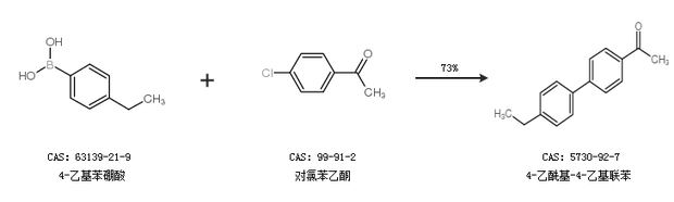 2.通过4-乙基苯硼酸和对氯苯乙酮合成4-乙酰基-4-乙基联苯,收率约73%;