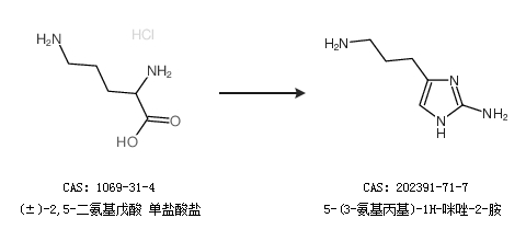 2.通过(±)-2,5-二氨基戊酸 单盐酸盐合成5-(3-氨基丙基)-1H-咪唑-2-胺