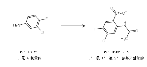 2.通过3-氯-4-氟苯胺合成5’-氯-4’-氟-2’-硝基乙酰苯胺