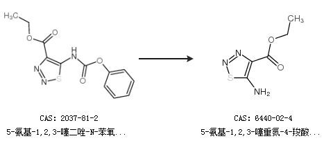 2.通过5-氨基-1,2,3-噻二唑-N-苯氧基羰基-4-羧酸乙酯合成5-氨基-1,2,3-噻重氮-4-羧酸乙酯