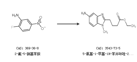 2.通过2-氟-5-硝基苯胺合成5-氨基-1-甲基-1H-苯并咪唑-2-丁酸乙酯