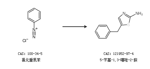 1.通过氯化重氮苯合成5-苄基-1,3-噻唑-2-胺
