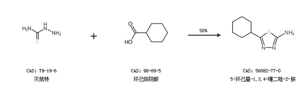 1.通过灭鼠特和环己烷羧酸合成5-环己基-1,3,4-噻二唑-2-胺,收率约58%;