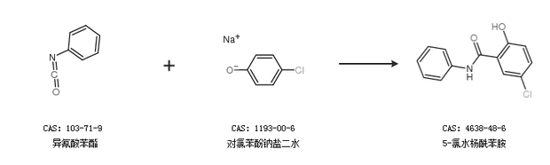 1.通过异氰酸苯酯和对氯苯酚钠盐二水合成5-氯水杨酰苯胺