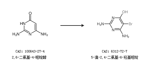 1.通过2,6-二氨基-4-嘧啶醇合成5-溴-2,4-二氨基-6-羟基嘧啶