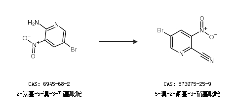2.通过2-氨基-5-溴-3-硝基吡啶合成5-溴-2-氰基-3-硝基吡啶