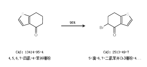 1.通过4,5,6,7-四氢-4-苯并噻吩合成5-溴-6,7-二氢苯并[b]噻吩-4(5h)-酮,收率约96%;