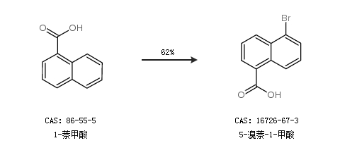 1.通过1-萘甲酸合成5-溴萘-1-甲酸,收率约62%;